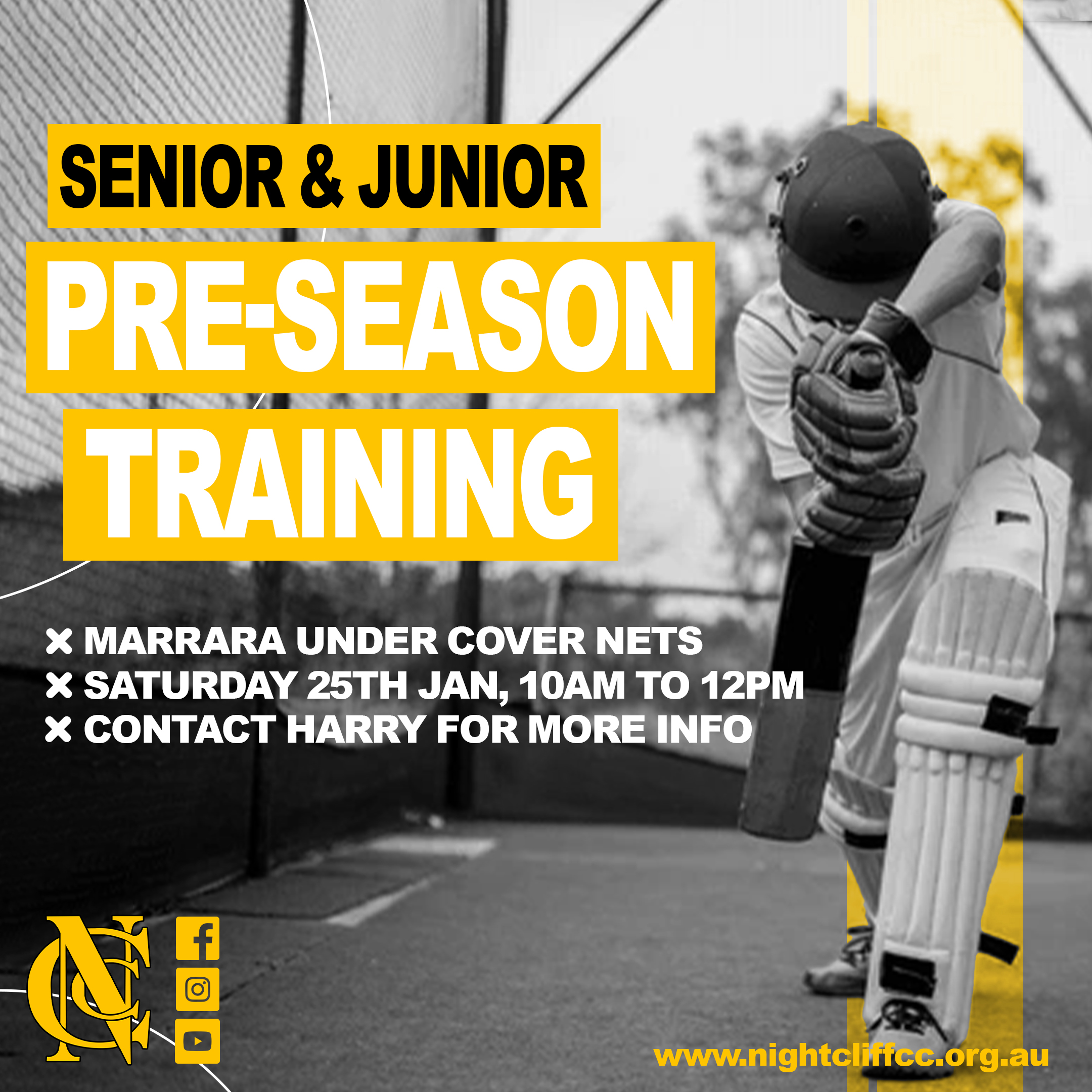 Join us for preseason training at the Marrara Undercover Nets on January 25th from 10:00 AM to 12:00 PM.
