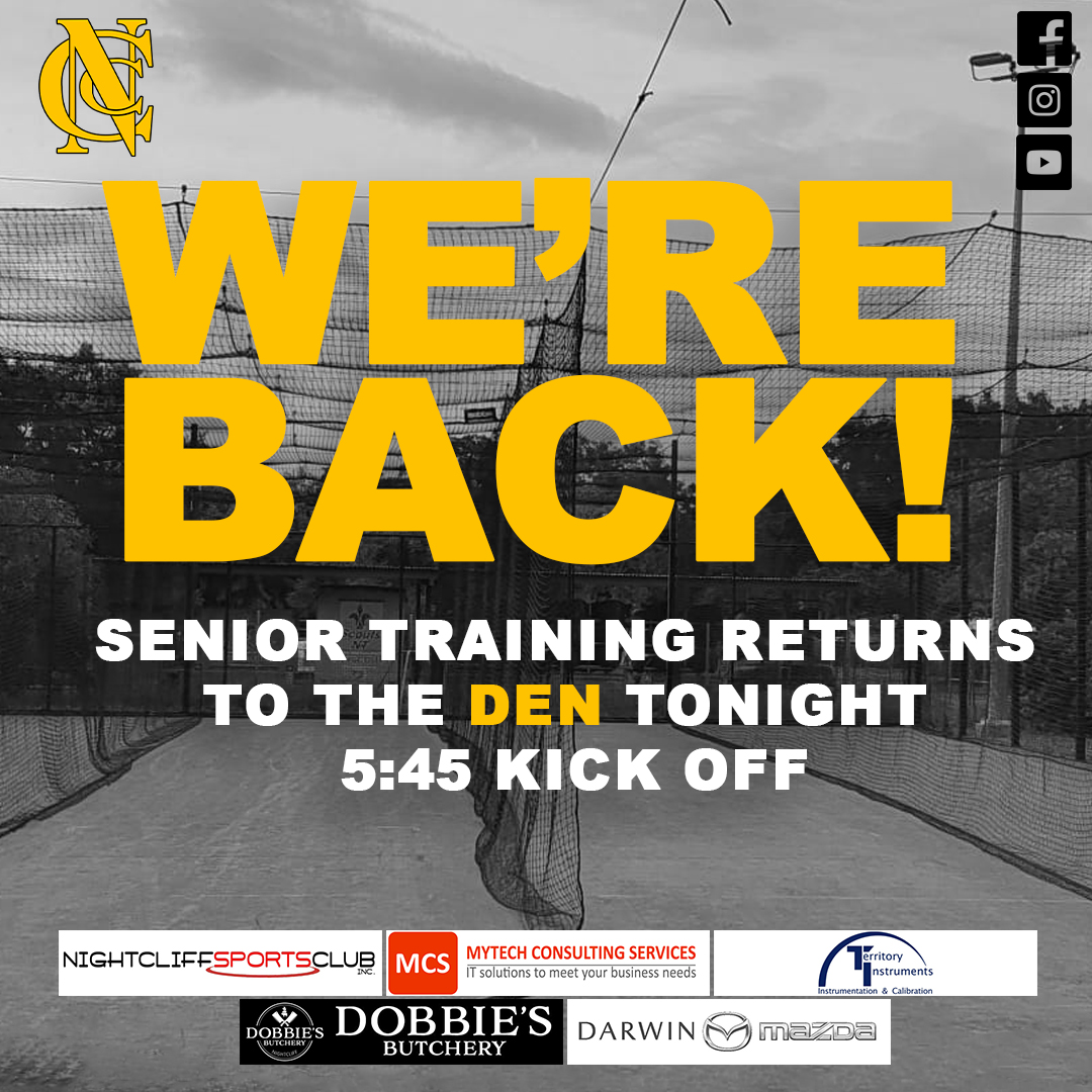 Senior training is back at the DEN tonight from 5:45pm. Let's keep that momentum going and get those nets buzzing!